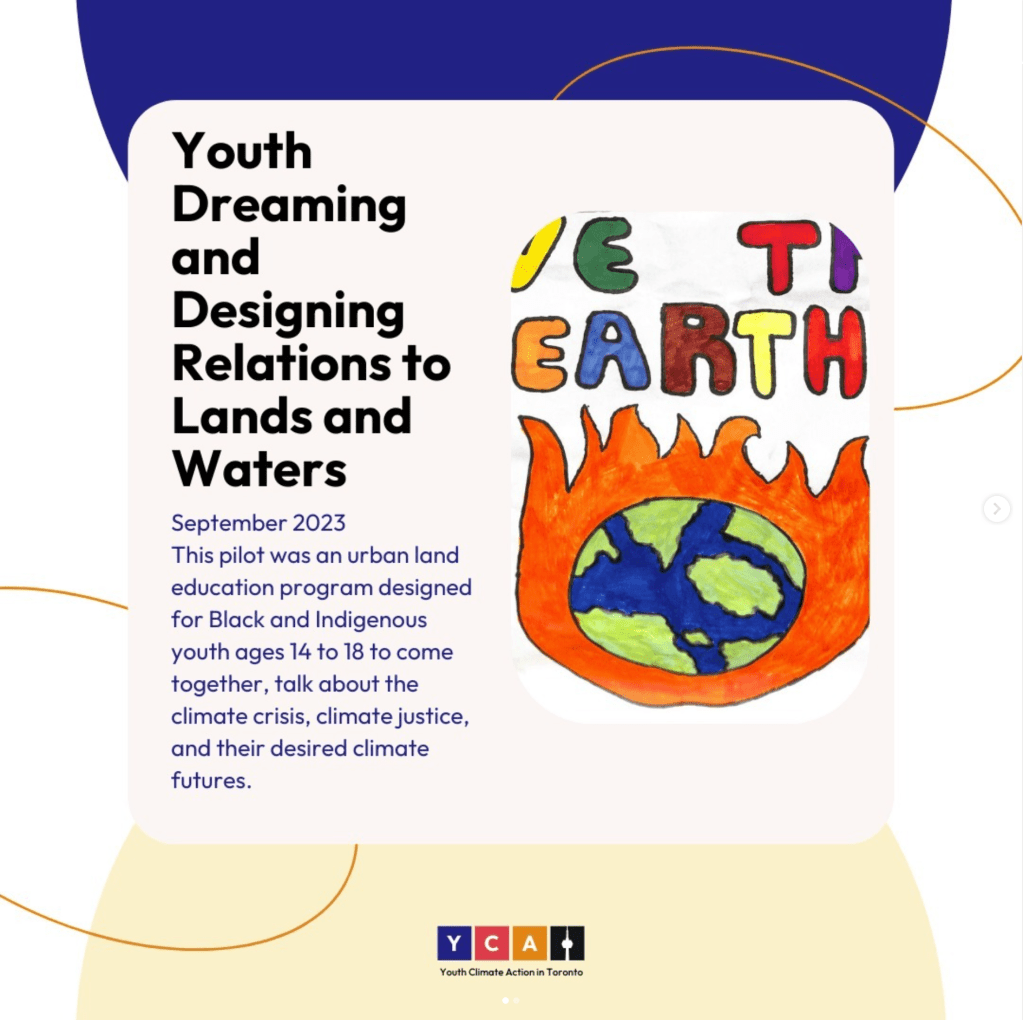 An afterschool land education program was designed by the @tkarontocirclelab for Black, Indigenous, and Afro-Indigenous youth to talk about the climate crisis and urban land relations, and to design land education programs. It was one of the engagement project piloted by the Y-CAT project, which are all feeding into the creation of the Youth Climate Action Engagement Strategy for the City of Toronto.